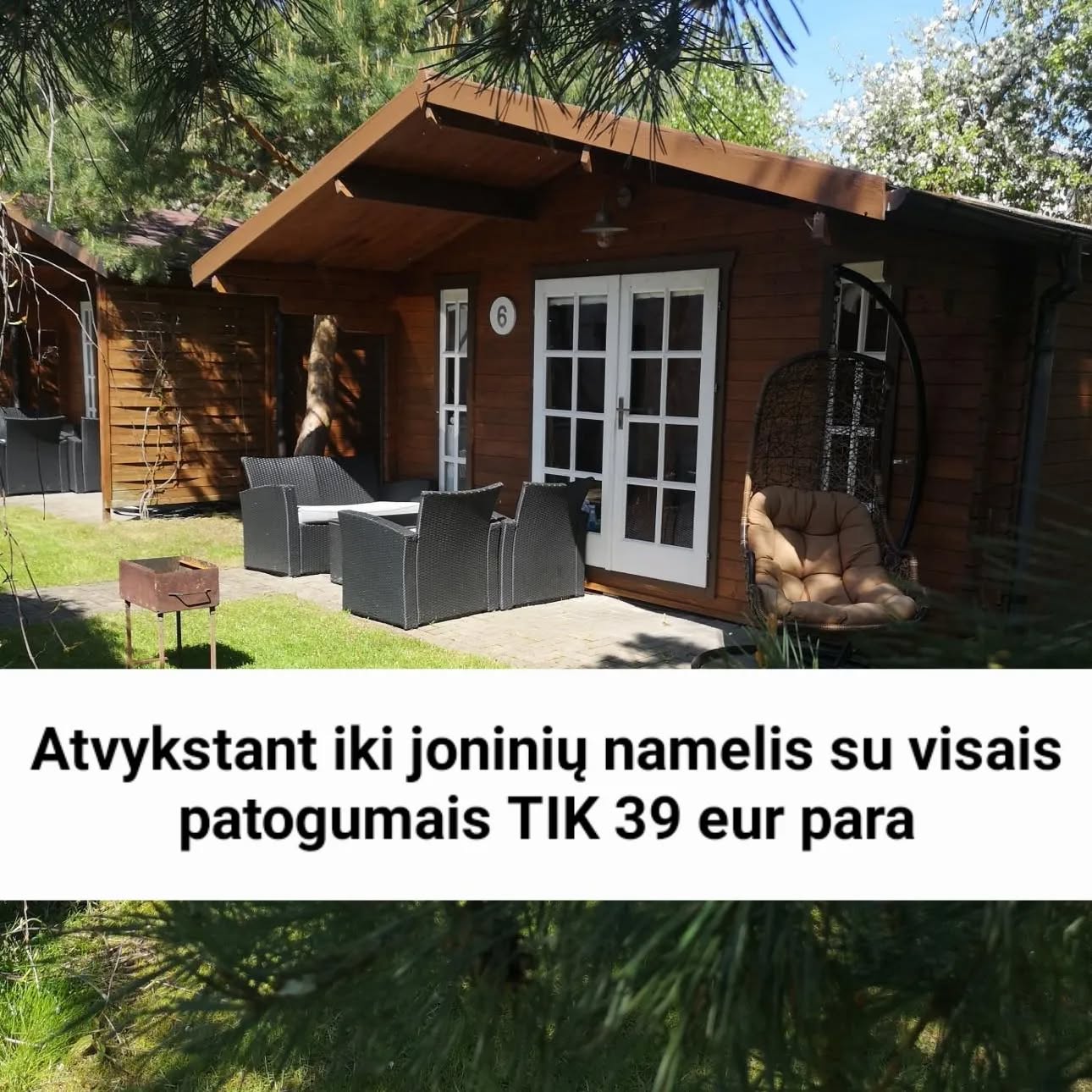- Apgyvendinimas: Erdvūs nameliai, talpinantys iki 6 žmonių