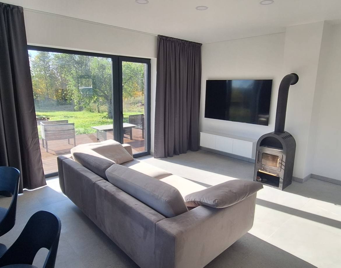 Sodyba gyvenimui,netoli Utenos, prie vandens,gamtoje su pakrante.Artimiausi kaimynai už 500m.Nauji baldai.Visa buitine technika.Šildymas grindinis oras vanduo.Vesinimas kondicionieriai.1050€ men.tel 060626431