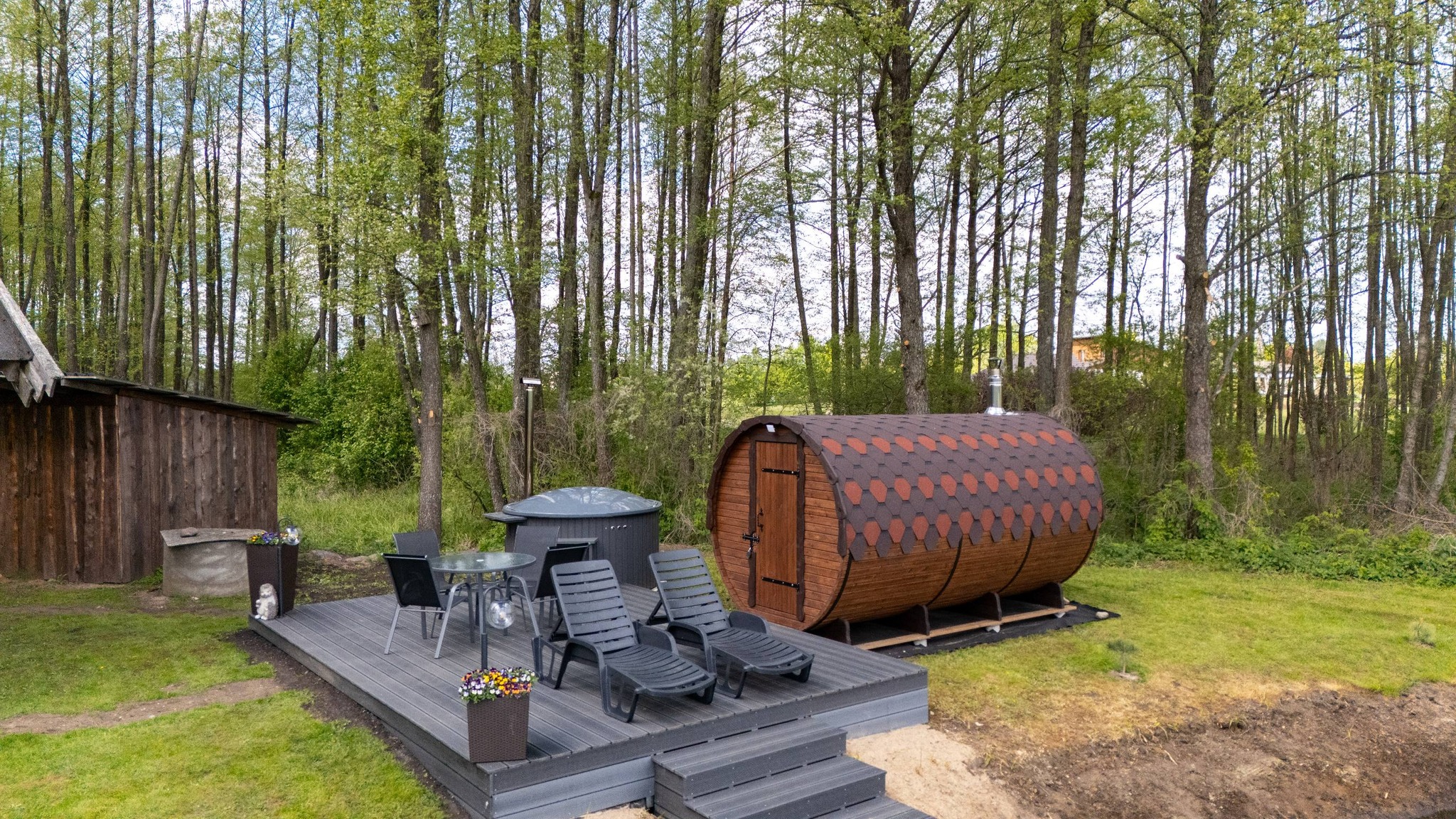 ♦️ Patogi terasa (su skėčiu nuo saulės, staliuku)