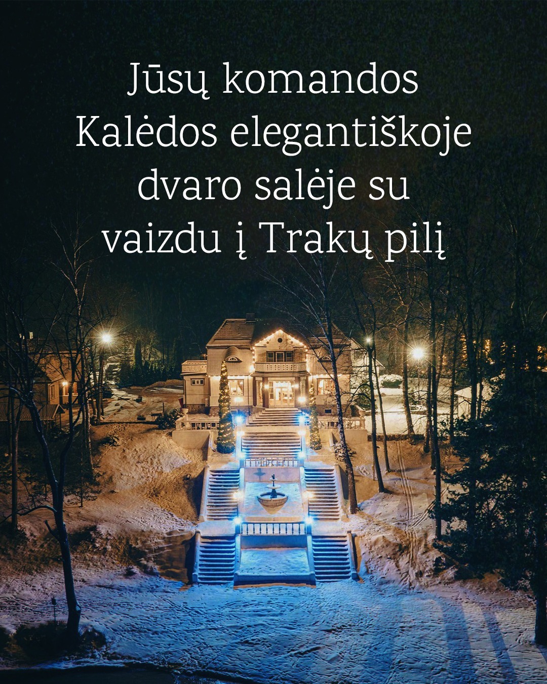 Švęskite metų pabaigą su komanda elegantiškoje dvaro salėje su vaizdu į Trakų pilį. ✨