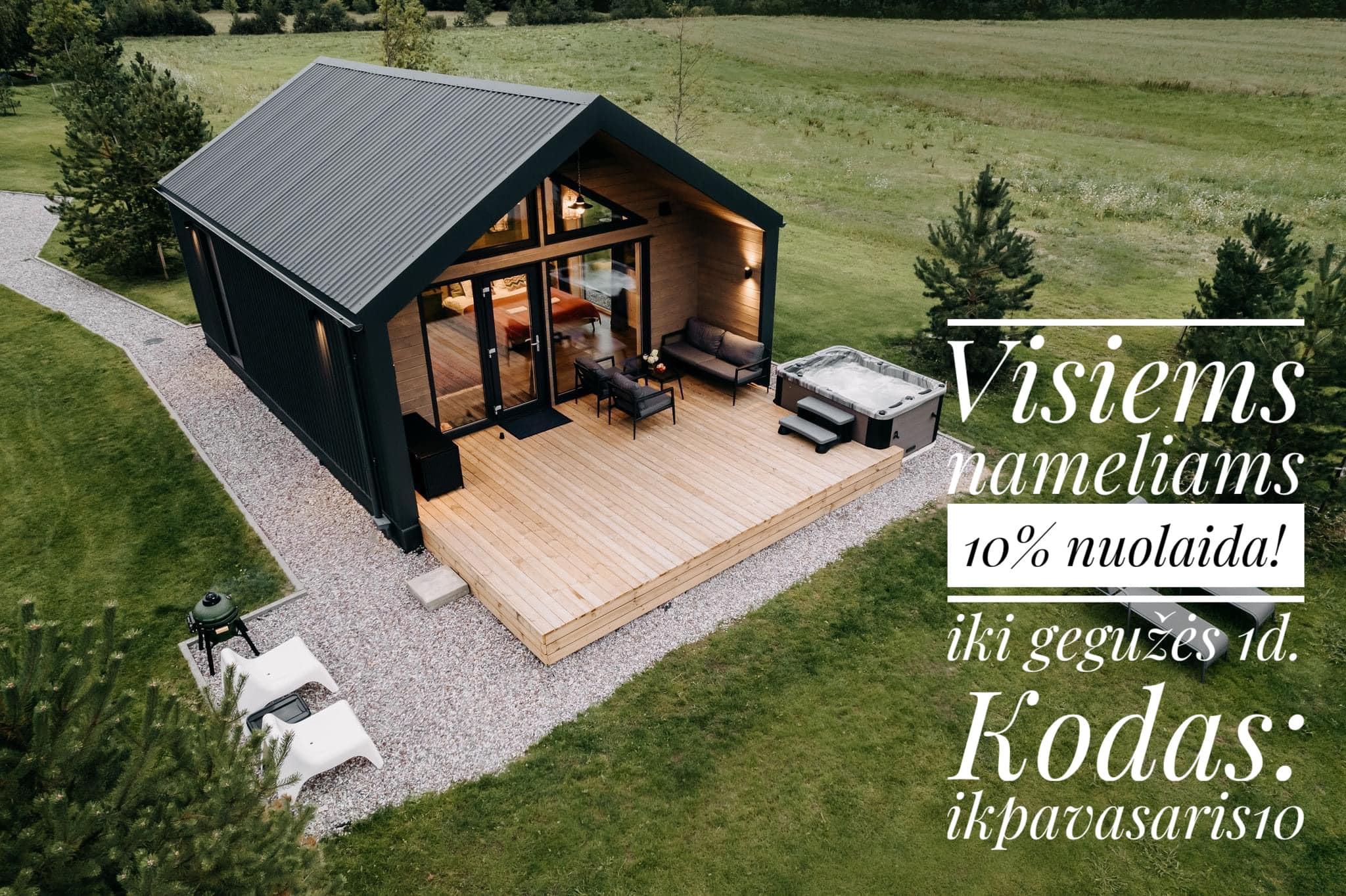 Visoms rezervacijoms, visiems nameliams, visomis dienomis kovo ir balandžio mėnesiais – 10 % NUOLAIDA!