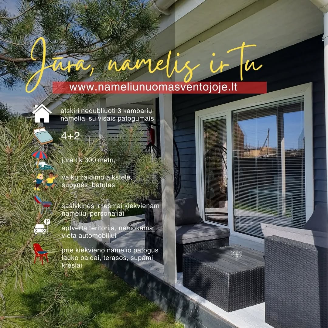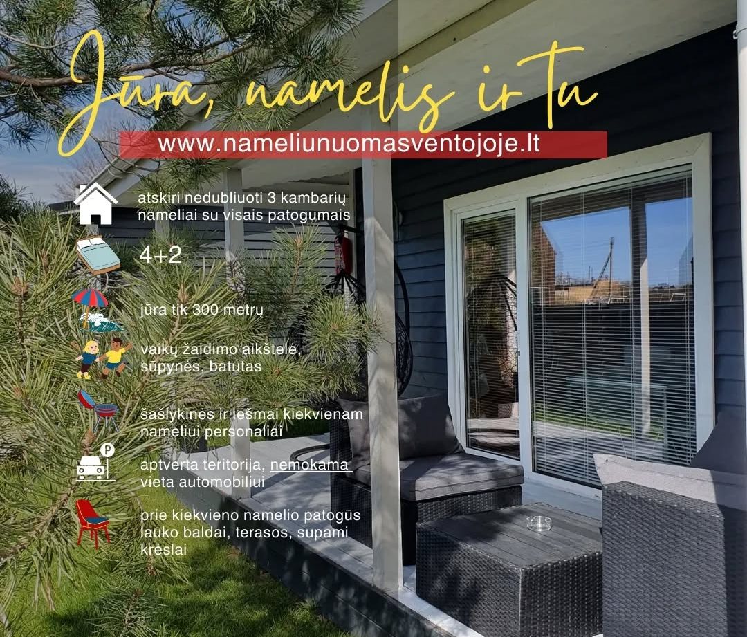 • Vieta: Ventojoje, šalia nuostabių gamtos peizažų, puikiai tinkančių poilsiui prie ežero ar jūros.