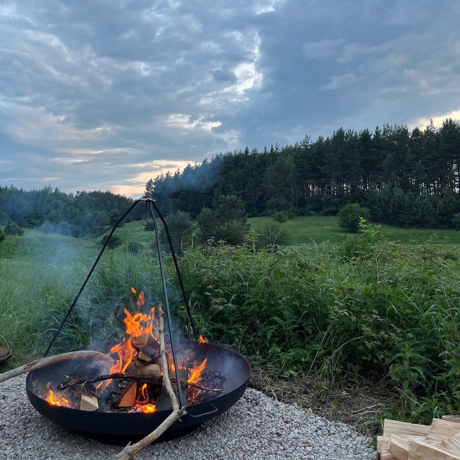 Ugniakuras gamtoje prie Konga ežero – ramybė ir šviesa