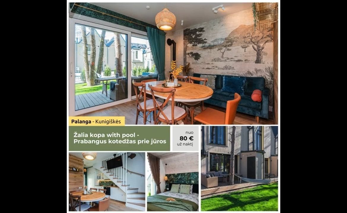 Poilsis gamtoje – tai puiki galimybė pabėgti nuo kasdienybės ir pasimėgauti ramiu gyvenimu, tačiau dažnai kyla klausimas, kur rasti tobulą vietą atostogoms. Ar jaučiate, kad metas pabėgti į gamtą, toliau nuo miesto šurmulio? „Žalia kopa with pool” – tai idealiai tinkanti vieta Jums! Šis stilingas kotedžas, įsikūręs ramioje Palangos vietoje, Kunigiškiuose, garantuoja nepamirštamas atostogas prie jūros.